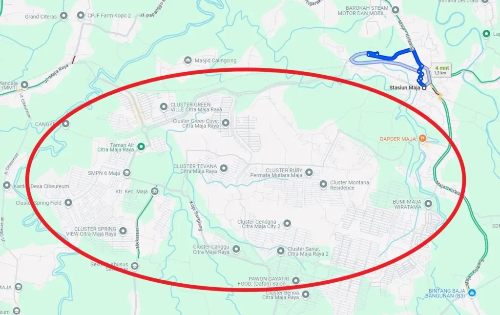 Cluster di Citra Maja 1, terutama Green Land, Green Cove, dan Green Vista juga masih relatif dekat ke Stasiun Maja.