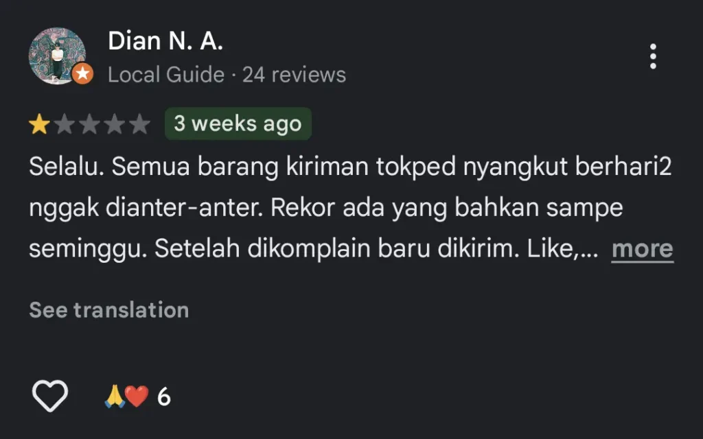Kamu pun bisa melihat berbagai review negatif dari pelanggan JNE yang paketnya diperam di CLG, DP Maja.